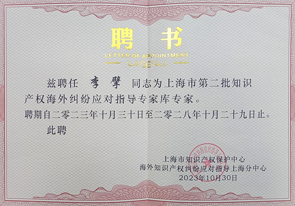 集佳上海分所骆苏华、李擘获聘成为上海市第二批知识产权海外纠纷应对指导专家库专家